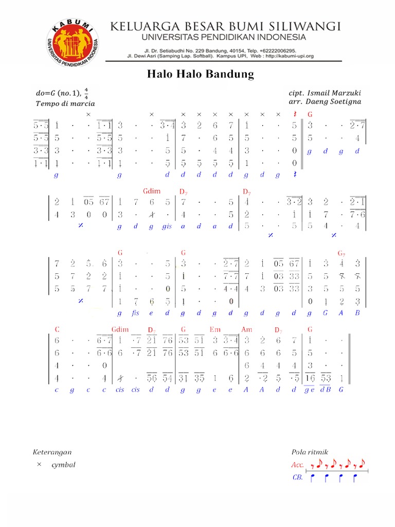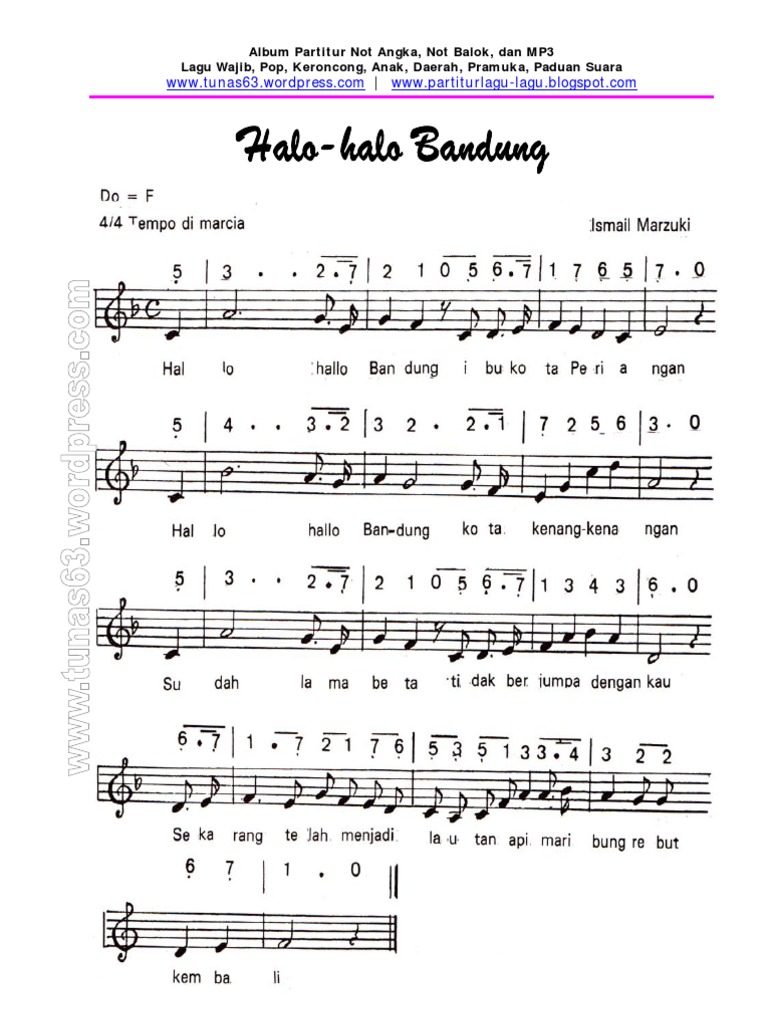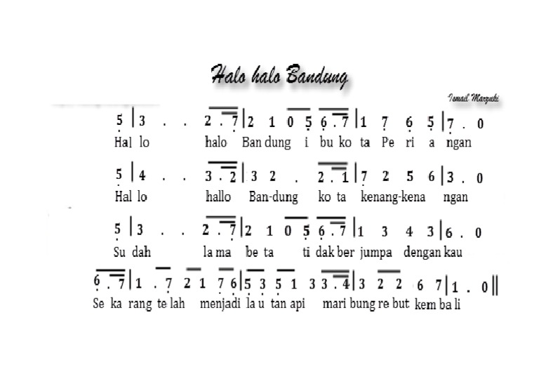 Hallo Hallo Bandung Partitur Lagu Nasional Indonesia