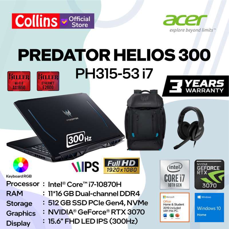 Jual Acer Predator Helios 300 Ph315 53 7045 I7 10870h 16gb 512gb Rtx3070 15 6 300hz W10 Terbaru November 2021 Harga Murah Kualitas Terjamin Blibli