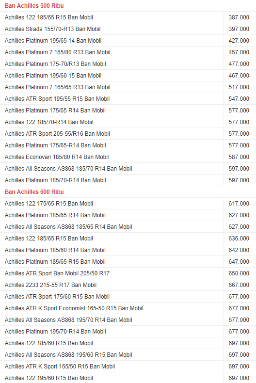 Daftar Harga Ban Achilles Terbaru Harga Ban Terbaru