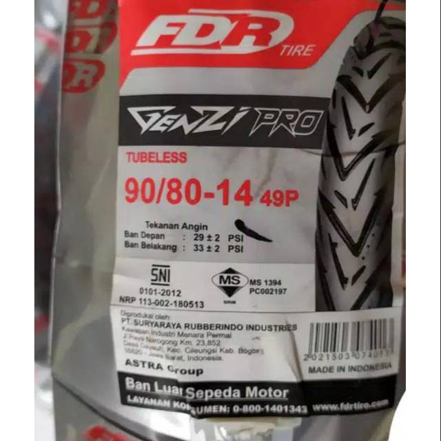 Daftar Harga Ban Fdr 90 80 Ring 14 Genzi Tubeless Bulan November 2021