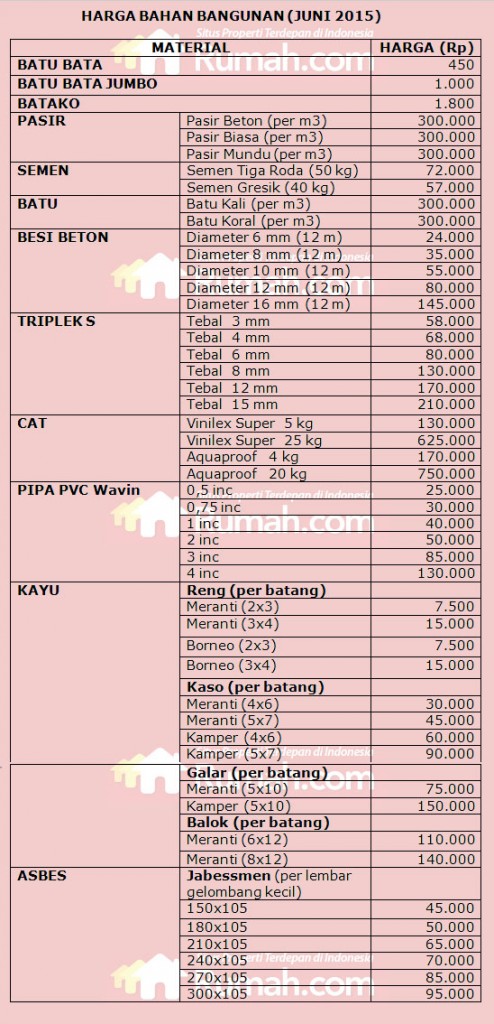 Terupdate Harga Material Bangunan Per Meter Harga Bahan Bangunan