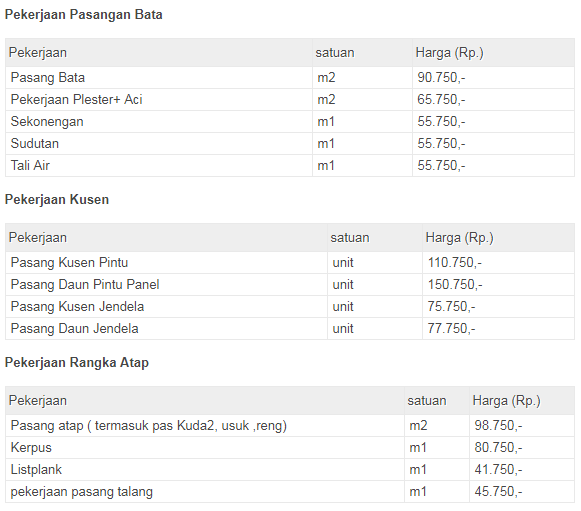 Harga Upah Borongan Bangunan Atau Harian Oktober 2021
