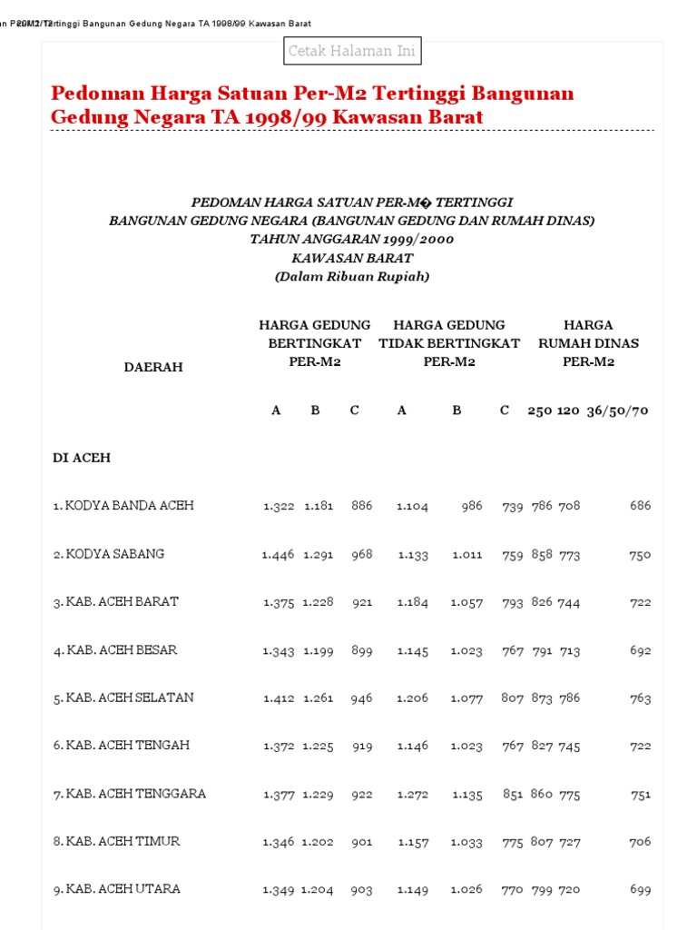 Harga Satuan Bangunan Per Meter Persegi Tahun 2015 Tentang Tahun