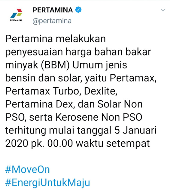 Pertamina Update Harga Bbm Terbaru Per Pukul 00 00 Tanggal 5 Januari 2020 Kanal Informasi Dan Inspirasi Pendidikan Terkini