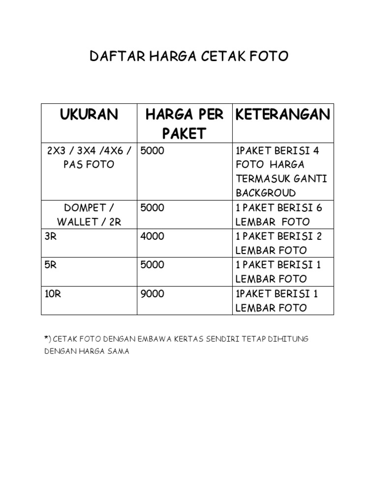 Daftar Harga Cetak Foto Docx Document