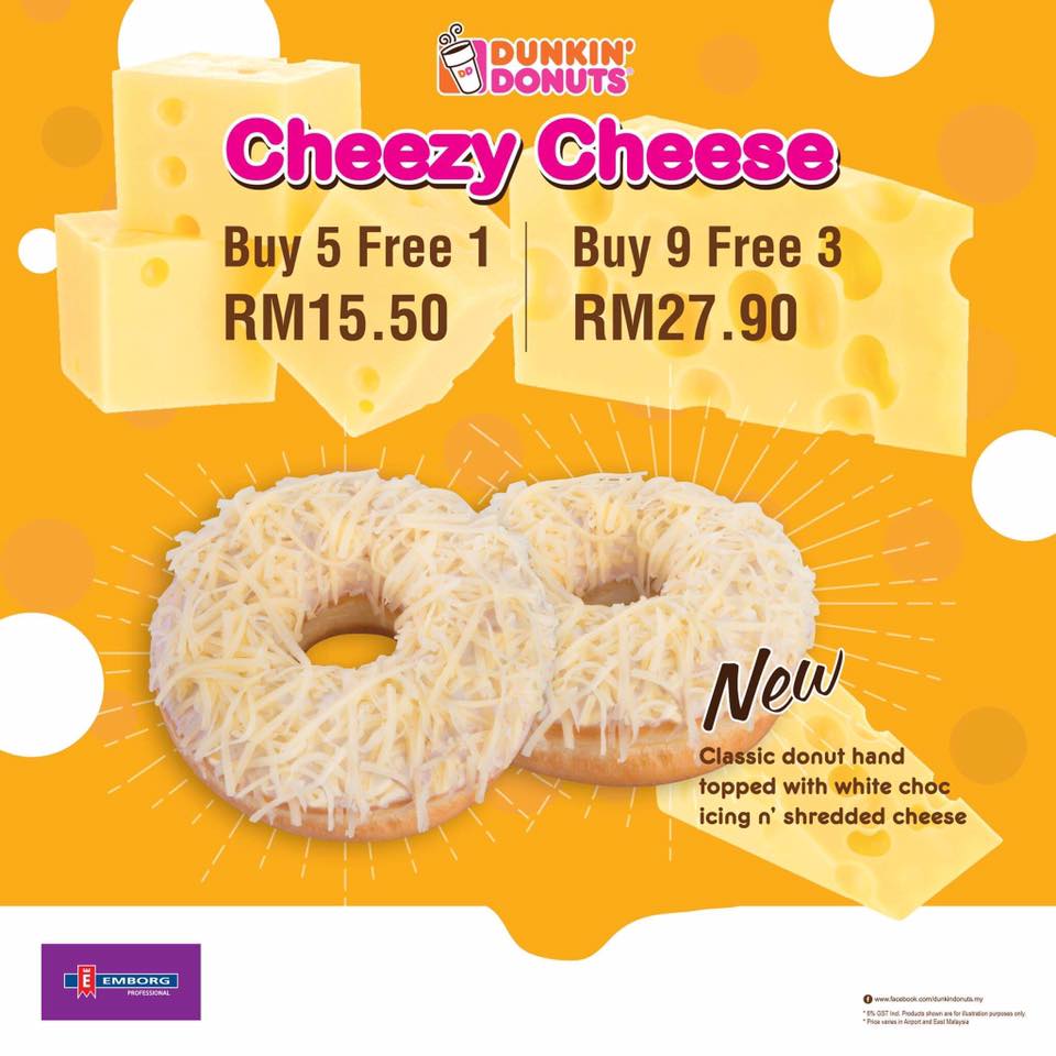 Dunkin Donuts Cheezy Cheese Donuts Buy 5 Free 1 Rm15 50 Buy 9 Free 3 Rm27 90 Harga Runtuh Durian Runtuh