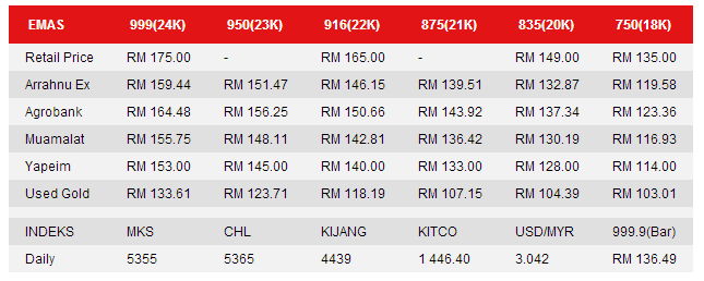 Terkini Harga Emas Di Kedai Emas Dan Ar Rahnu Terpilih