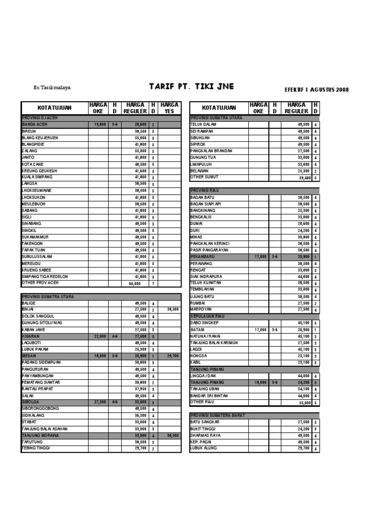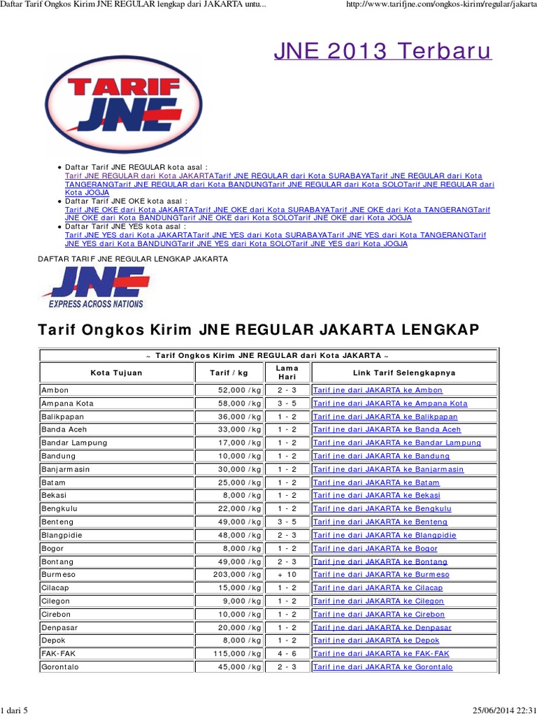 Daftar Tarif Ongkos Kirim Jne Regular Lengkap Dari Jakarta Untuk Titipan Kilat Toko Online Anda Pdf