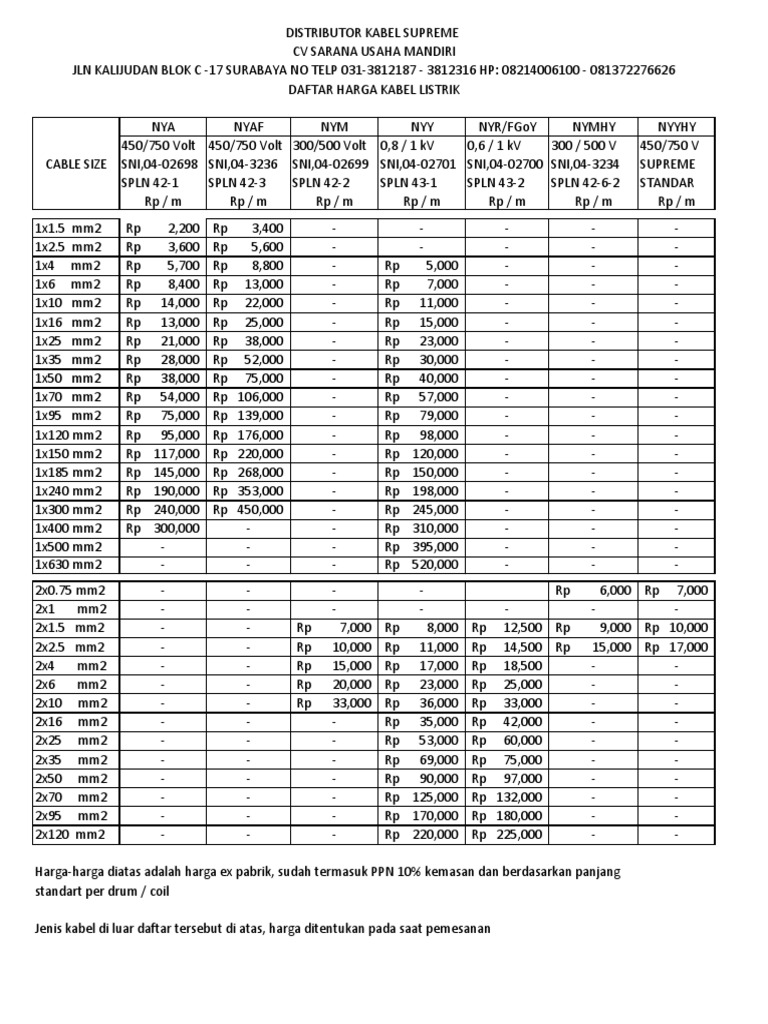 Harga Kabel Supreme 2021 Nya Nyaf Nyy Nyyhy Hargaalat Id