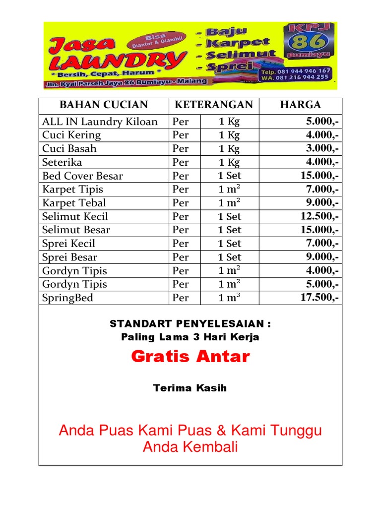 Daftar Harga Top Jaya Laundry Tulungagung Laundry Kiloan Ambil Antar Hotel Apatement Dan Penginapan Lainnya