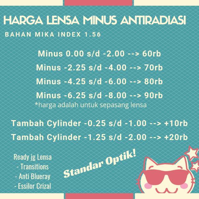 Paket Lensa Kacamata Minus Murni Rp100 000 Free Ongkir Lensa Kacamata Minus Photocromic Rp198 500 Lensa Kacamata Minus Fsv 1 67 Hmc Lensa Dipertipis Hotsale Rp600 000 Oppa Glasses Lensa Kacamata Minus Or Rabun Jauh Dan Lensa