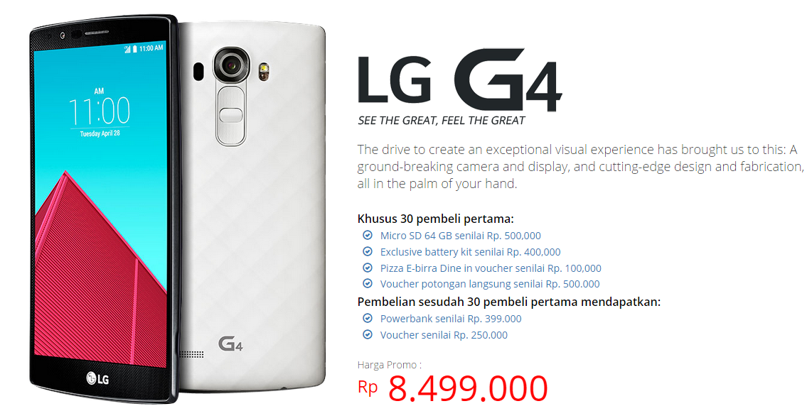 Harga Lg G4 Di Indonesia Rp 8 5 Juta Pre Order Pada 13 Mei 2015 Di Lg Mobile Store Pricebook