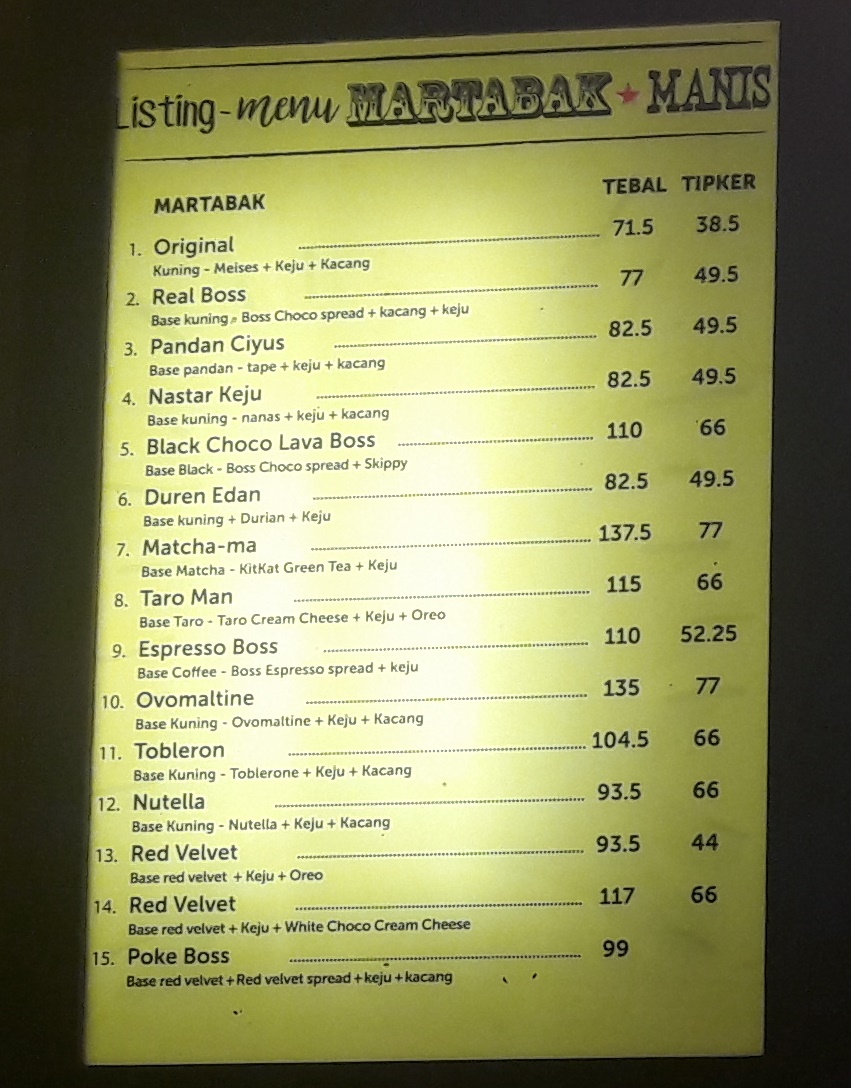 Menu 2 Picture Of Martabak Boss Jakarta Tripadvisor