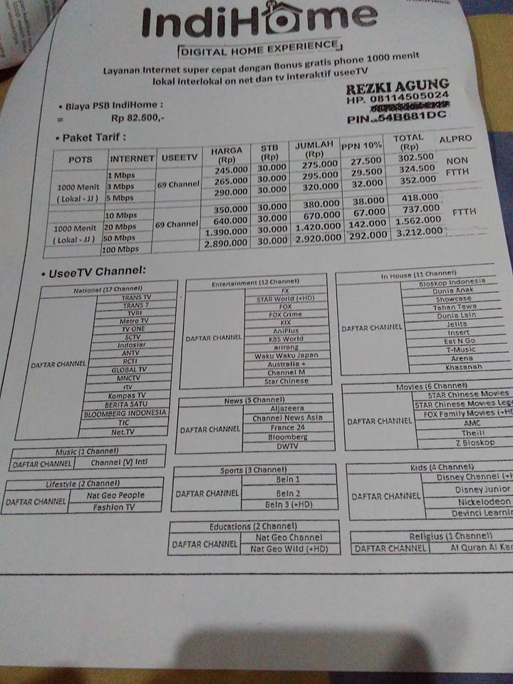 Info Tarif Internet Telkom Indihome Tahun 2019 Indoamaterasu