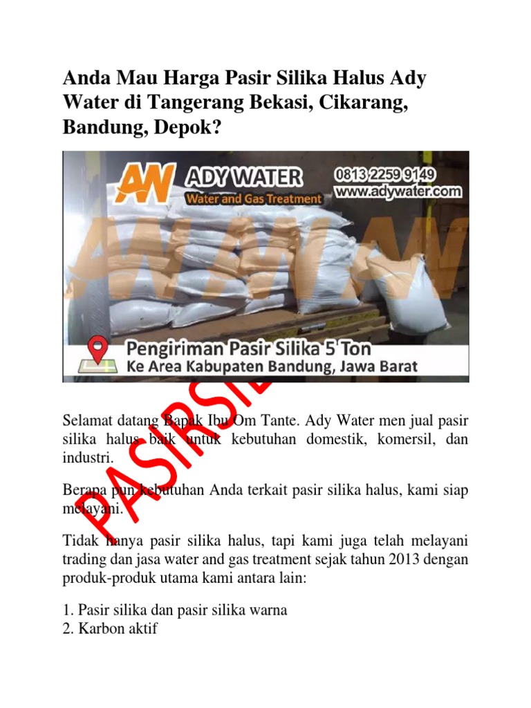 Jual Tempat Jual Pasir Silika Bandung Ady Water Di Lapak Ady Water Bukalapak