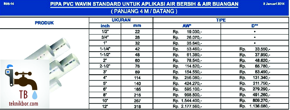 Gali Sumur Standar Harga Pipa Pvc Wavin Aw Dan D Standar Harga Tahun 2014 Bulan Januari