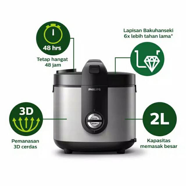 Philips Hd3138 33 Rice Cooker 2 Liter Premium Plus Silver Bakuhanseki Jakarta Indonesia Harga Jual Terbaik