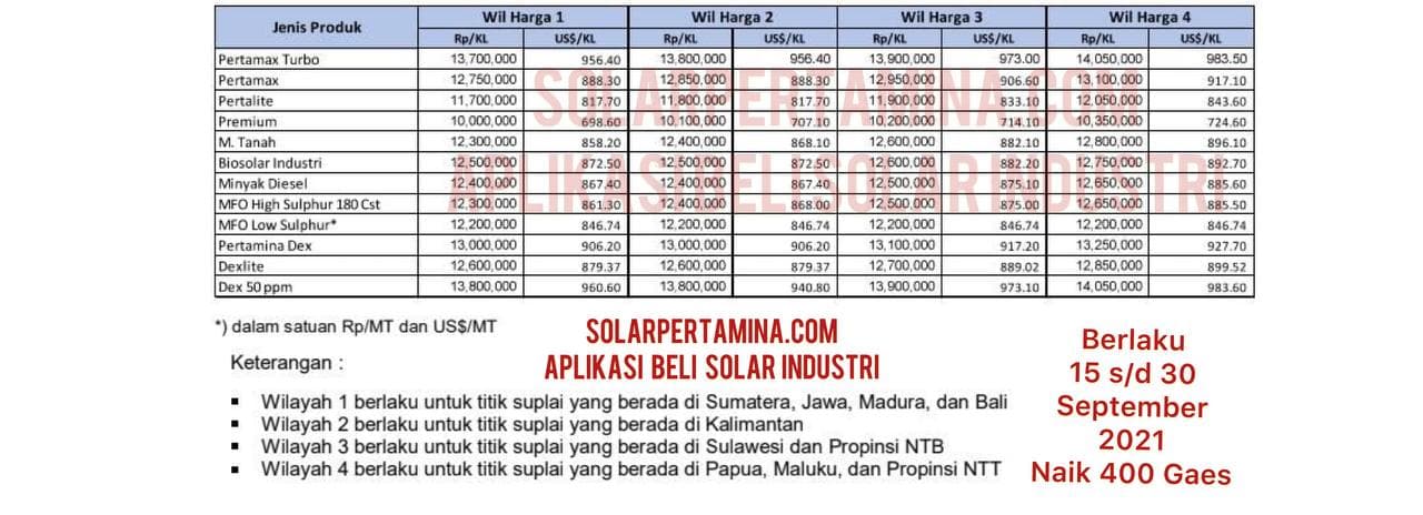 Harga Bbm Bahan Bakar Minyak Solar Industri Non Subsidi Pertamina Periode 15 30 September 2021 Solar Pertamina By Pt Mue Pt Bse Supplier Bbm Solar Industri Non Subsidi Agen Pertamina