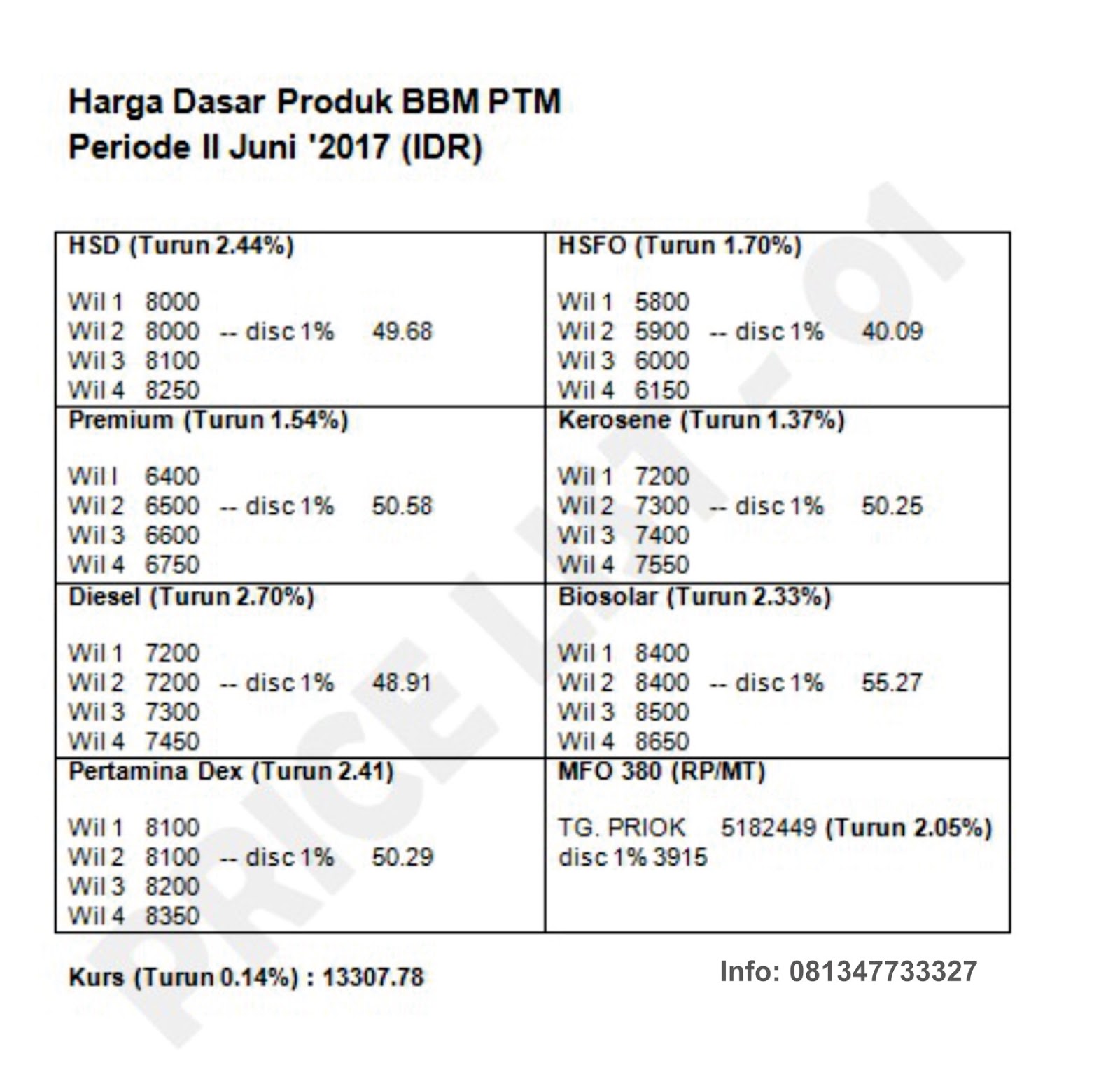 Harga Keekonomian Solar Industri Pt Pertamina Persero Periode 15 30 Juni 2017 Solar Industri 081347733327