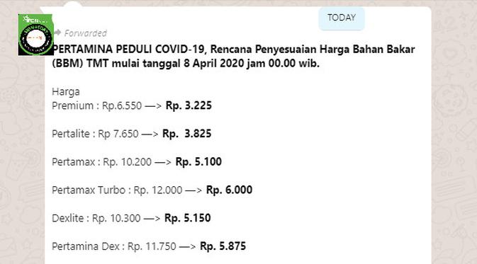 Cek Fakta Hoaks Pertamina Turunkan Harga Bbm Hingga 50 Persen Cek Fakta Liputan6 Com