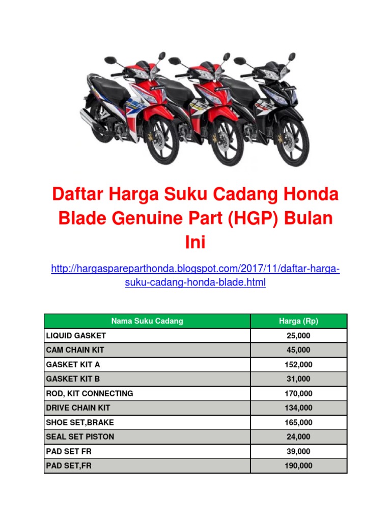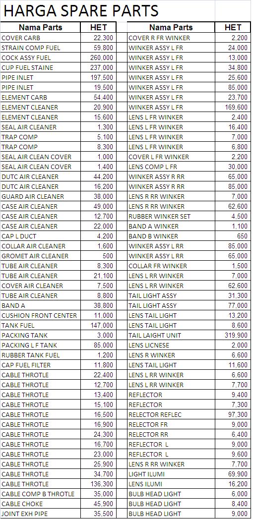 Informasi Daftar Harga Sparepart Sepeda Motor Honda 2017 Hargamotormatic Com Hargamotormatic Com