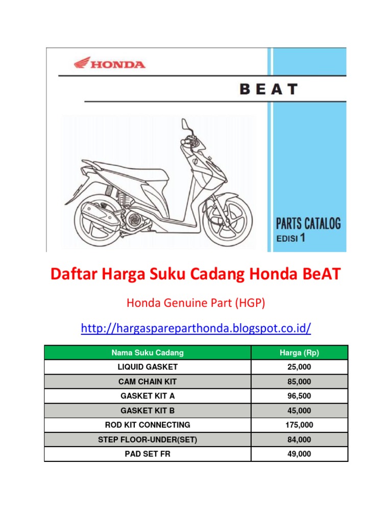 Daftar Harga Sparepart Honda Beat Februari Maret 2018 Informasi Harga Terbaru