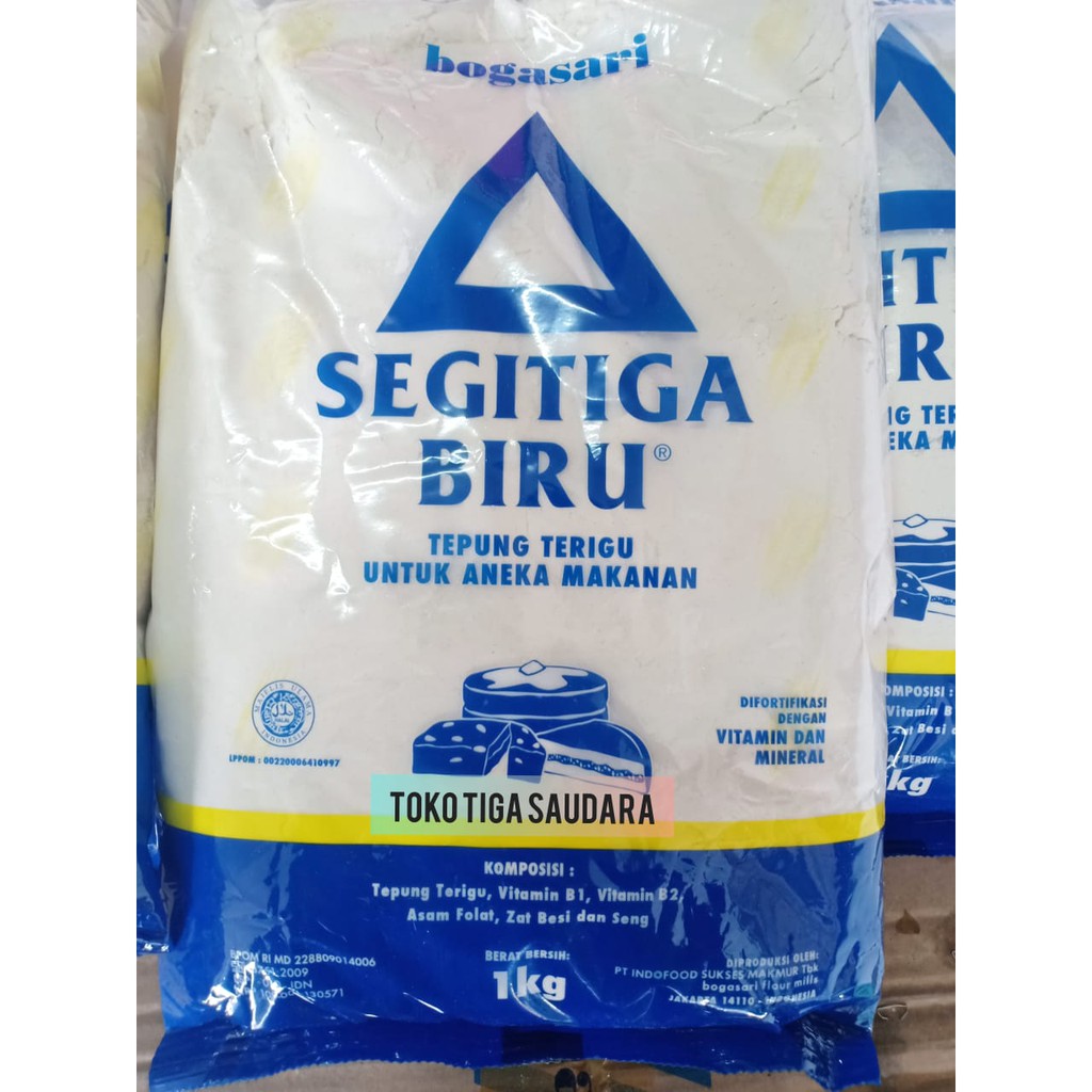 Jual Tepung Terigu Bogasari Segitiga Biru Terigu Protein Sedang 1 Kg Halal Di Lapak Valentino Store Bukalapak