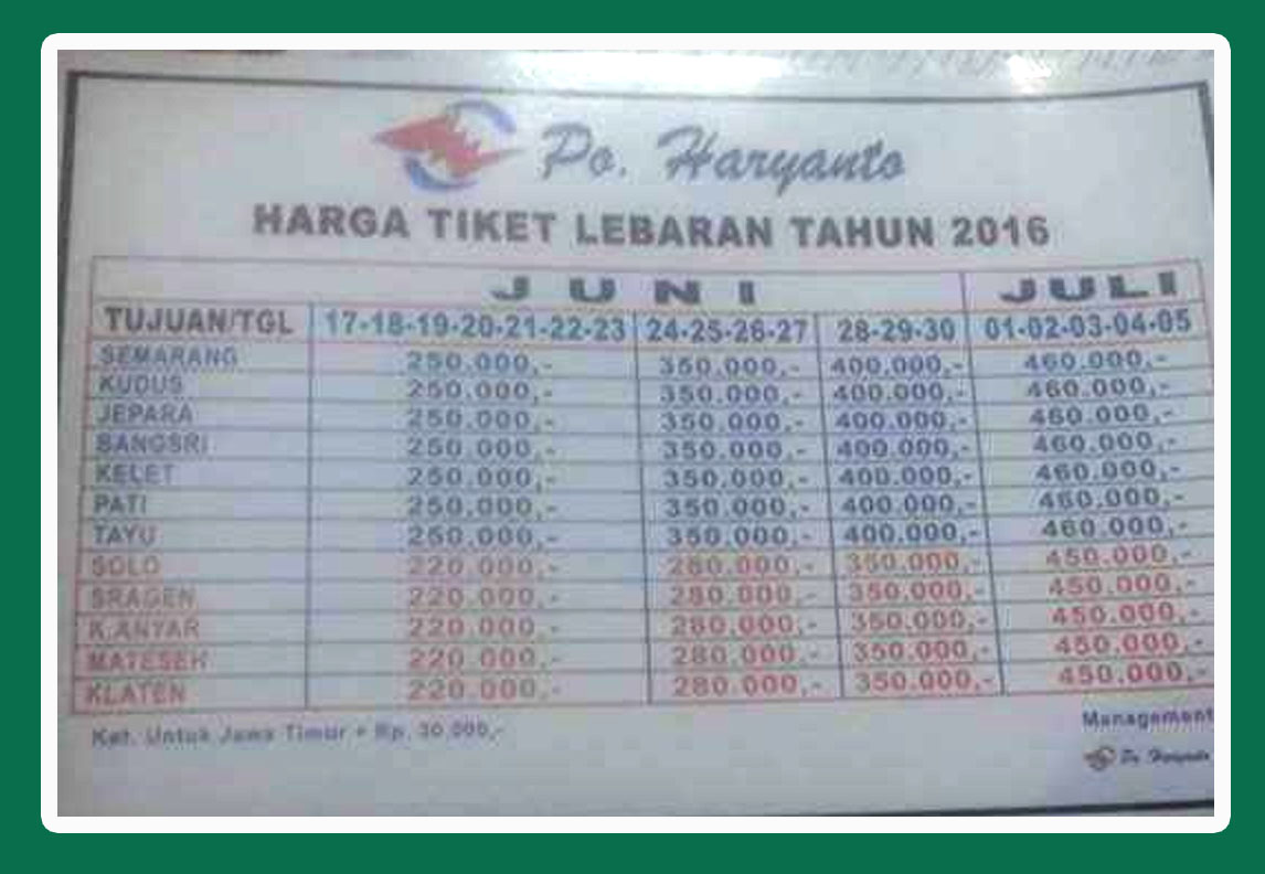 Harga Tiket Lebaran Tahun 2016 Bus Haryanto Cari Agen Bus