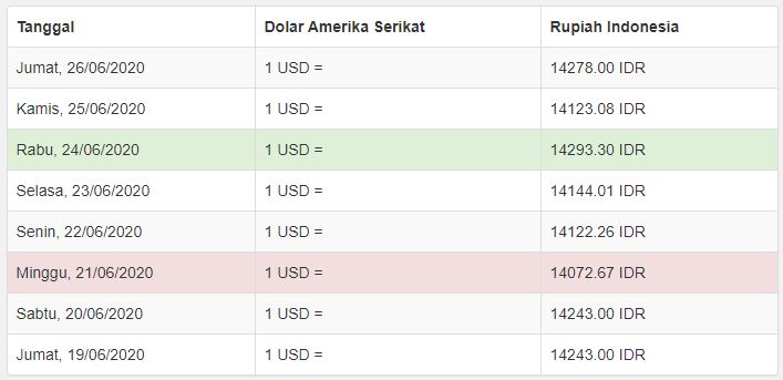 Usd Idr Kurs Nilai Tukar Dollar Ke Rupiah Hari Ini