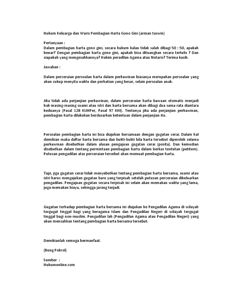 Contoh Surat Harta Gono Gini Download Contoh Surat Lengkap