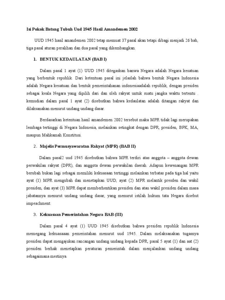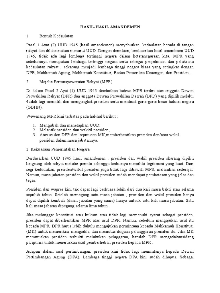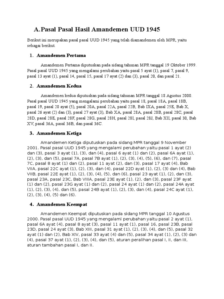 Pasal Pasal Hasil Amandemen Uud 1945 Download Docx