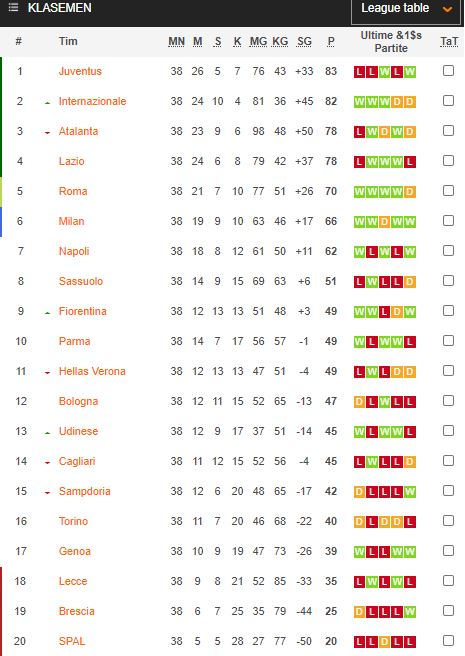 Klasemen Akhir Liga Italia 2018 19 Selamat Datang Di Liga Champions Atalanta