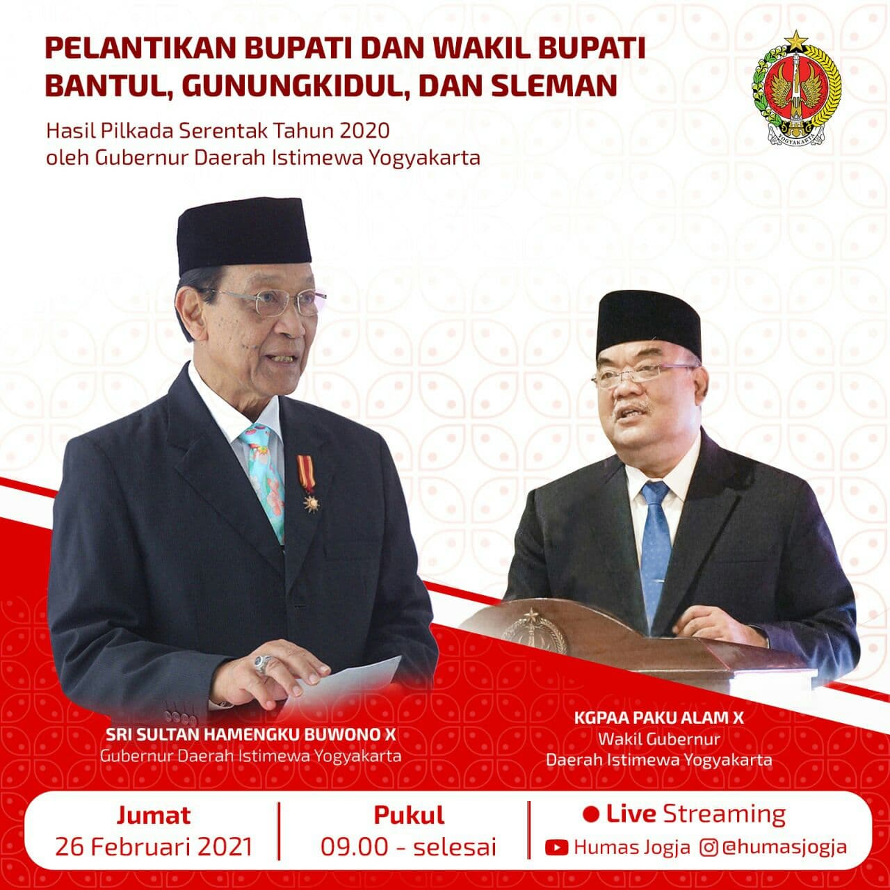 Humas Pemda Diy V Twitter Sesuai Dengan Hasil Pilkada Serentak Tahun 2020 Telah Terpilih Pasangan Bupati Dan Wakil Bupati Bantul Gunung Kidul Dan Sleman Pelantikanbupati Gubernurdiy Wakilgubernurdiy Srisultanhbx Kgpaapakualamx Jogjaistimewa