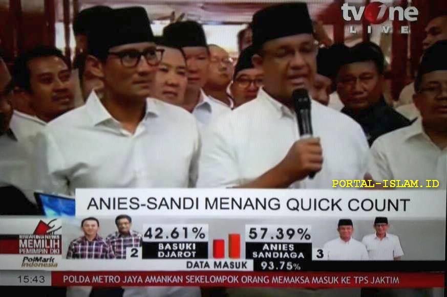 Allahu Akbar Hasil Quick Count Anies Sandi Menang Portal Islam