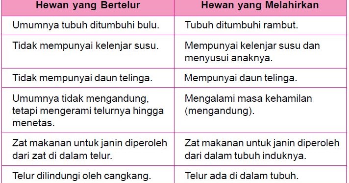 Perbedaan Ciri Ciri Hewan Bertelur Dengan Melahirkan