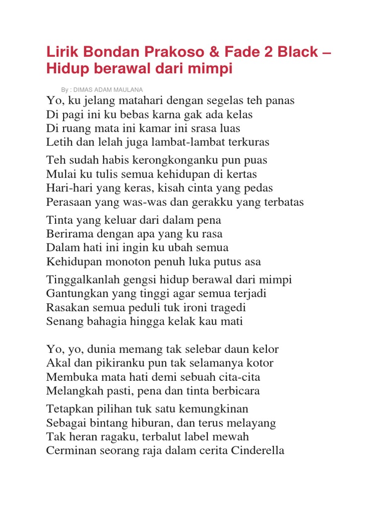 Lirik Hidup Berawal Dari Mimpi Bondan Prakoso Fade2black Diadona Id