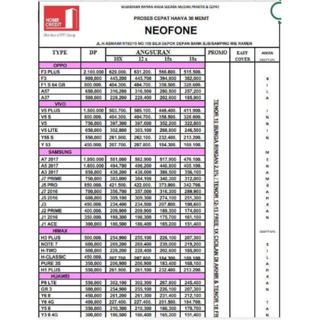 Price List Cicilan Handphone Tanpa Kartu Kredit Di Home Credit Kredit Hp 30 Menit Itc Roxi Mas