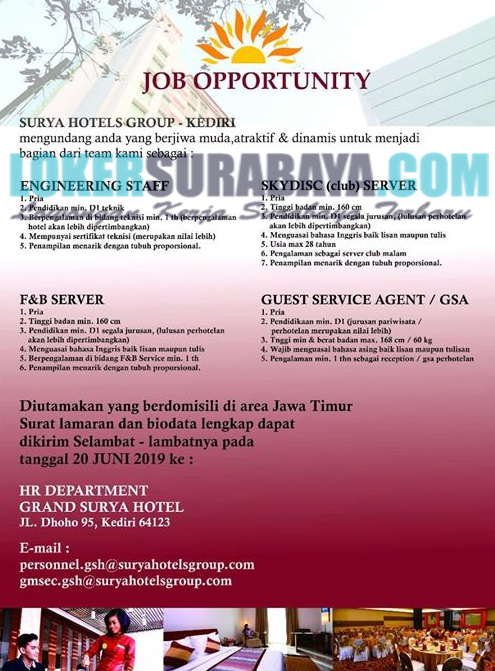 Loker Terbaru Di Surya Hotels Group Kediri Juni 2019 Lowongan Kerja Surabaya September 2021 Lowongan Kerja Jawa Timur Terbaru