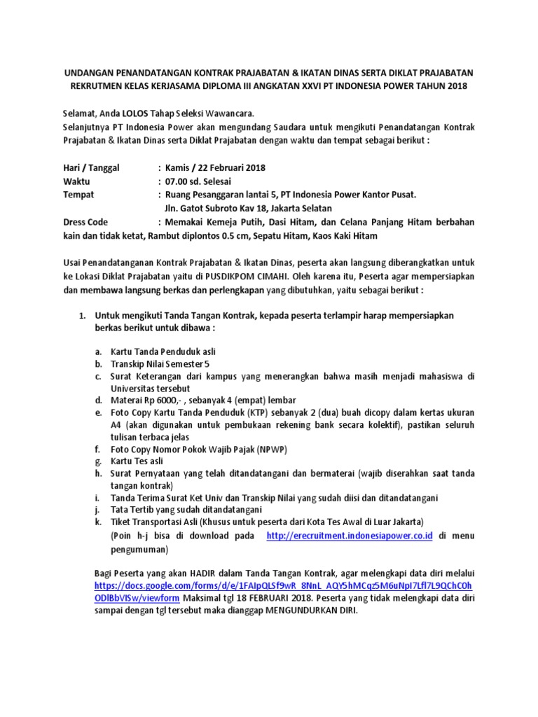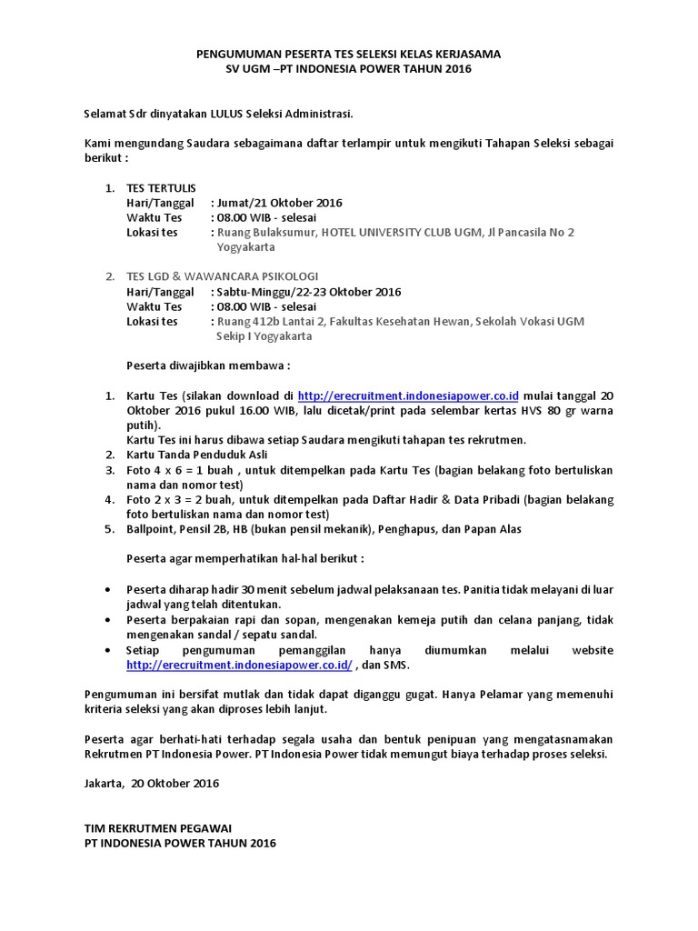 Pengumuman Peserta Tes Seleksi Pegawai Peserta Tes Seleksi Pegawai Pt Indonesia Power Tahun 2015 Panggilan Pdf Document