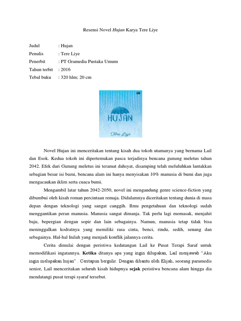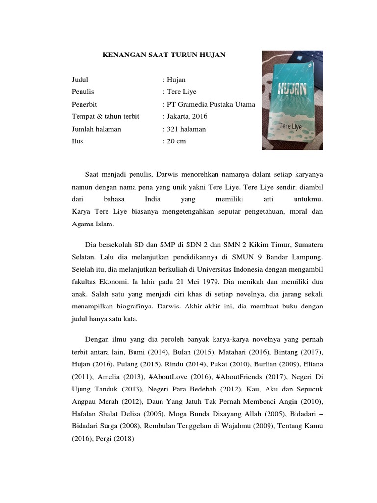 Journal Pea Review Novel Hujan Tere Liye Selamat Musim Hujan