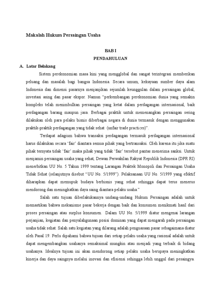 Contoh Contoh Proposal Posisi Hukum Persaingan Usaha Dalam Sistem Hukum Nasional