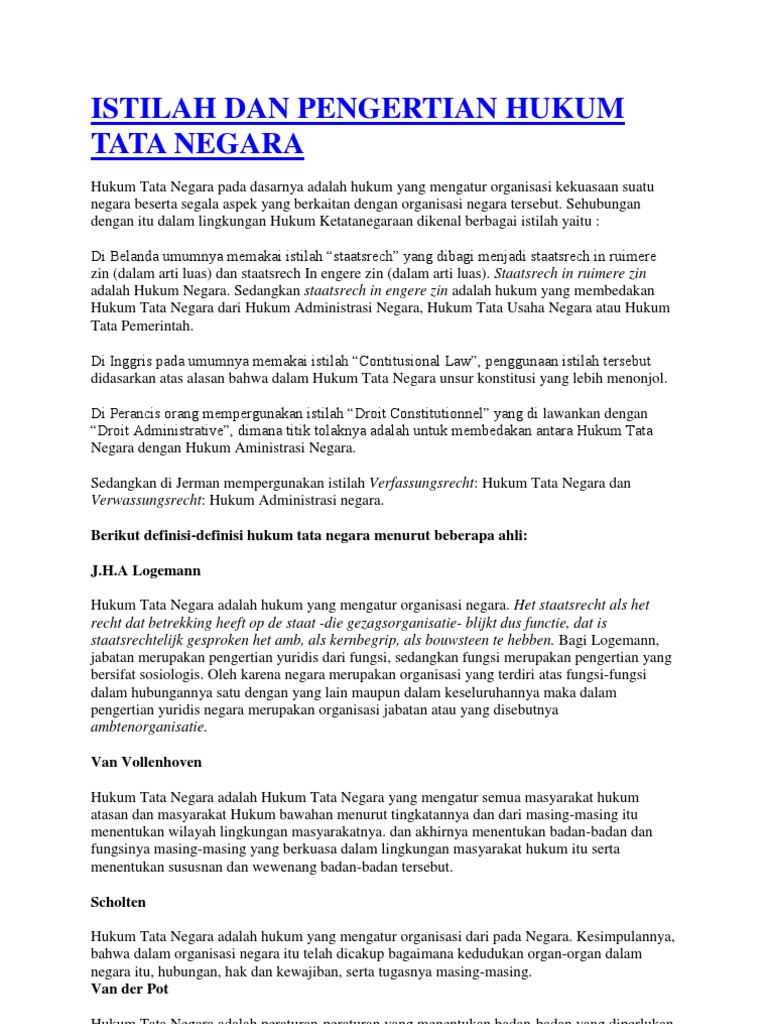Pengertian Hukum Tata Negara Menurut Para Ahli Tesis Hukum