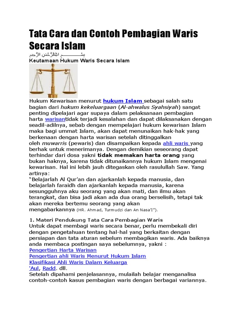 Hukum Waris Islam Tata Cara Hitung Pembagian Waris