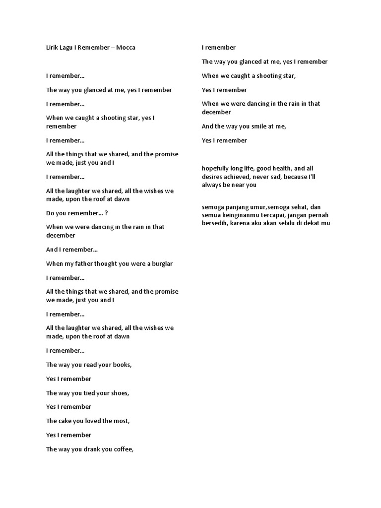 English Lirik I Remember By Mocca Wattpad