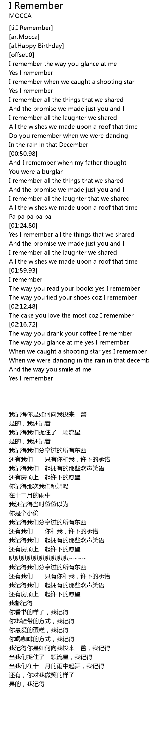 I Remember Lyrics Mocca Mojim Com