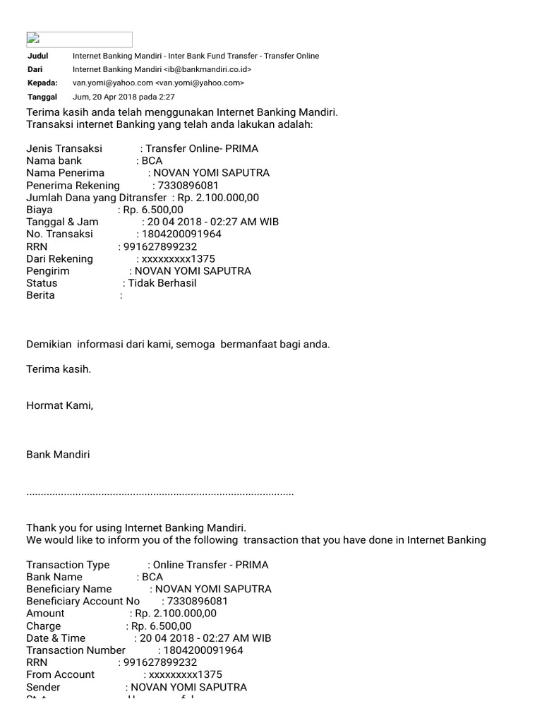 Bank Mandiri On Twitter Elsia Cchaidir Mhn Maaf Ats Ketidaknyamanannya Utk Menindaklanjuti Double Transfer Tsb Mhn Info Nama Lengkap Via Dm Tks Yara