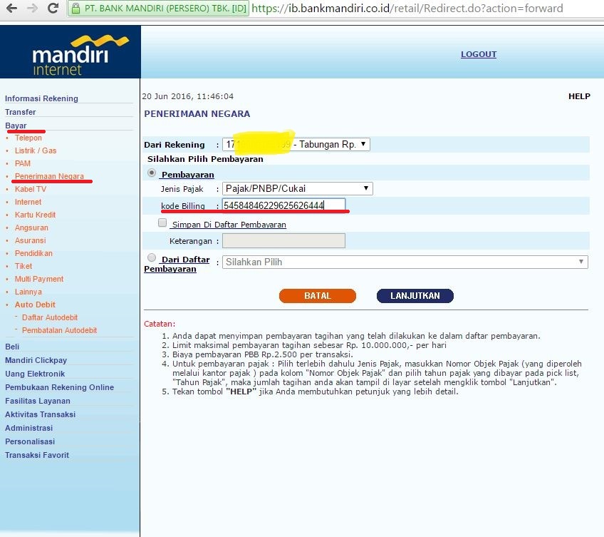 Bayar Id Billing Internet Banking Bank Mandiri Pajeg