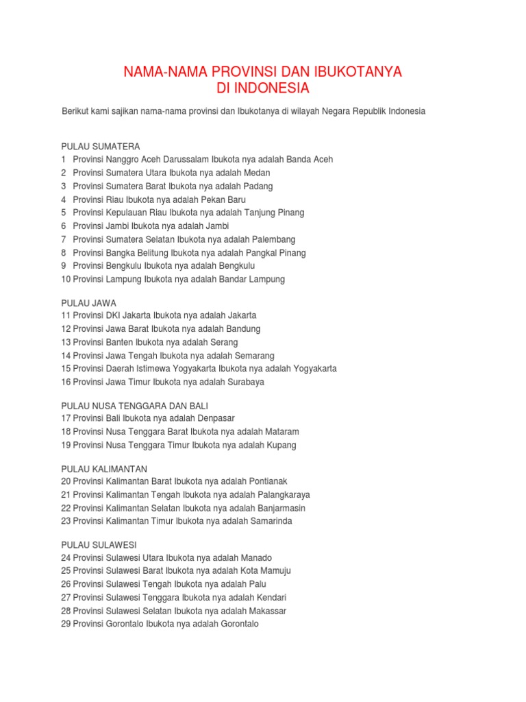 Inilah Daftar Nama 34 Provinsi Di Indonesia Beserta Ibu Kotanya Semua Halaman Bobo