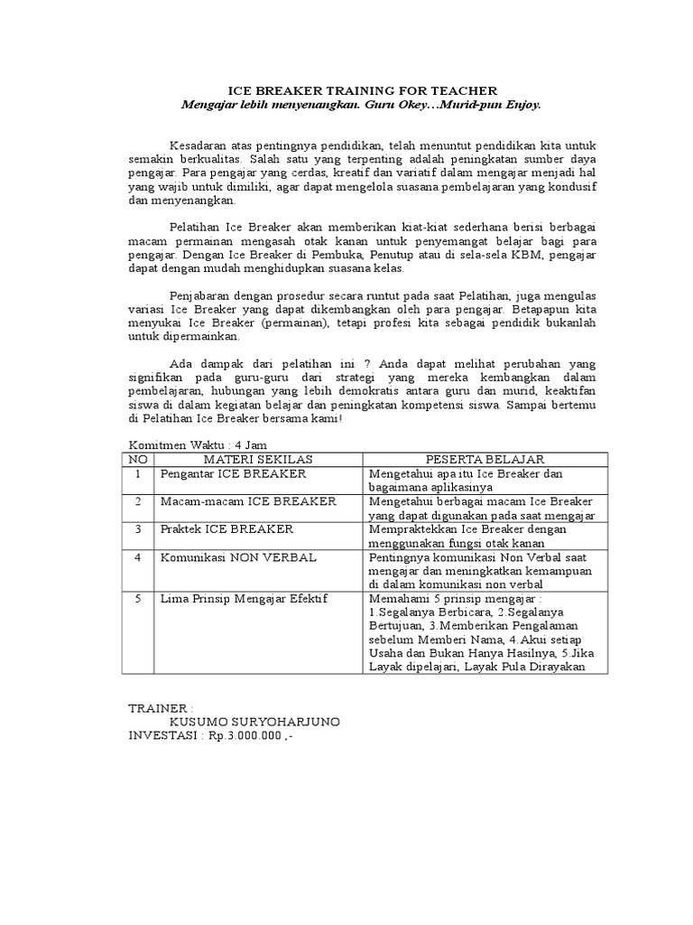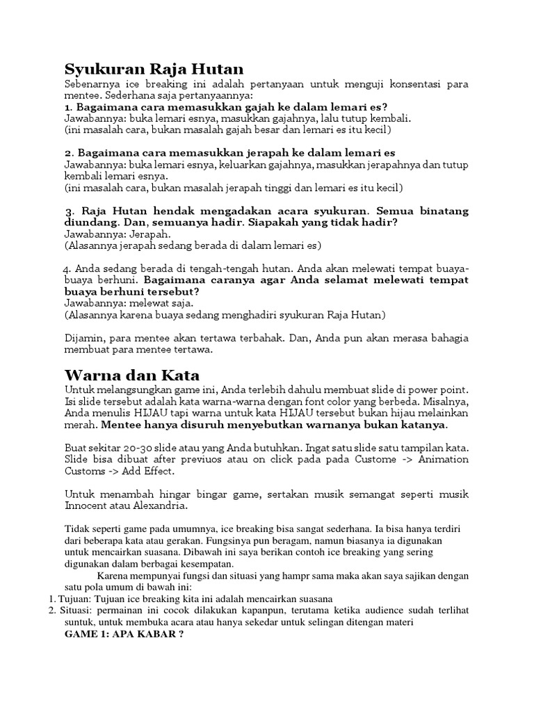 Permainan Ice Breaking Ini Sederhana Sekali Docx Document