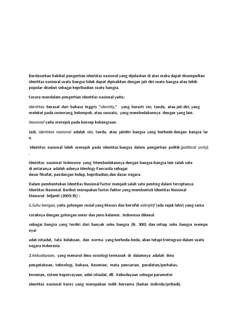 Hakikat Identitas Nasional Pengertian Unsur Bentuk Faktor
